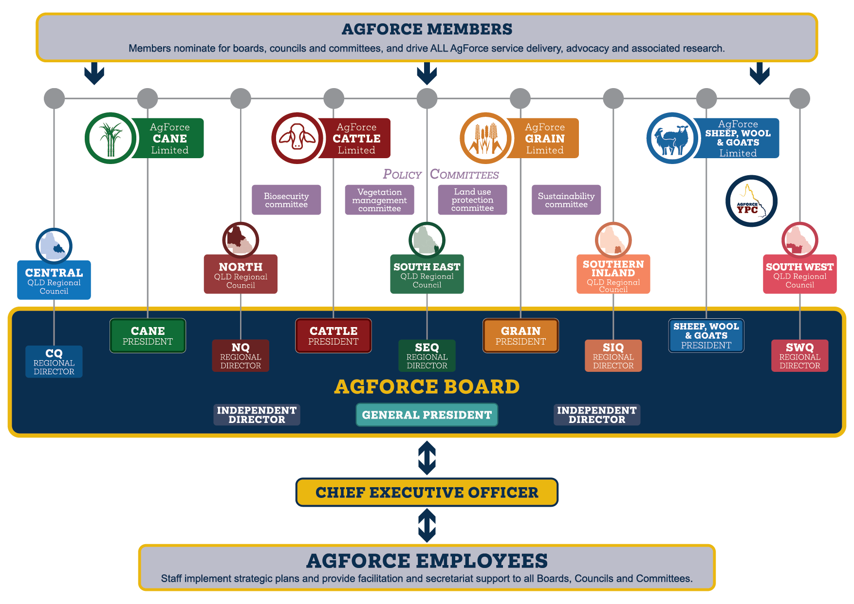 AgForce is a not-for-profit which has over 5500 members. Our structure comprises of a state board, four commodity boards, and five regional councils supported by staff under the management of a Chief Executive Officer.